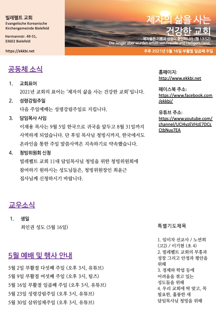 주보 제목2021년 5월 16일 주보입니다2021-05-15 21:48작성자ekkbi1991 목록글쓰기 이전2021년 성령강림주일 주보입니다ekkbi19912021-05-22다음2021년 5월 9일 주보입니다ekkbi19912021-05-08 Powered by MangBoard | 망보드 스토어