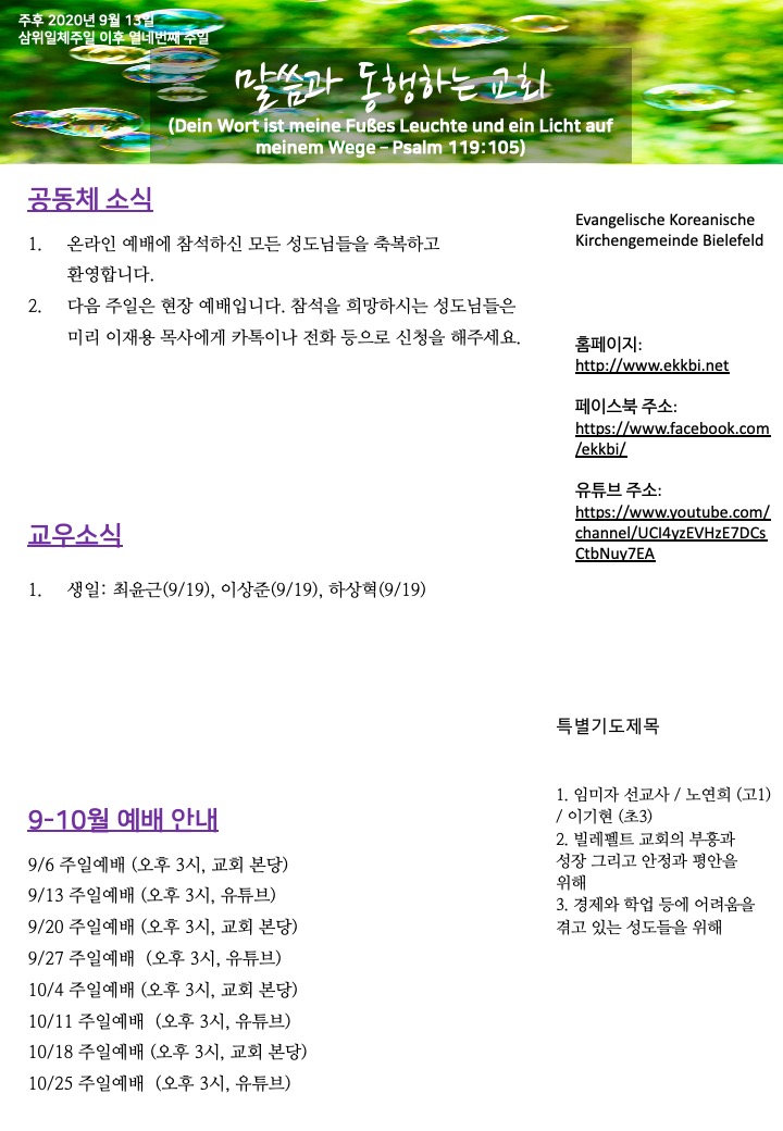 주보 제목2020년 9월 13일 주보입니다2020-09-12 19:34작성자ekkbi1991내일 주보입니다. 내일은 유튜브에서 오후 3시에 실시간으로 함께 온라인 예배를 드리겠습니다^^ 목록글쓰기 이전2020년 9월 20일 주보입니다.ekkbi19912020-09-26다음2020년 8월 30일 주보입니다ekkbi19912020-08-29 Powered by MangBoard | 망보드 스토어