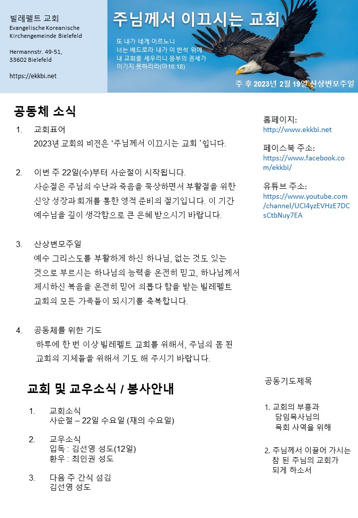 주보 제목2023년 2월 19일 주보입니다. 2023-04-02 00:25작성자Kwangcheonann 목록글쓰기 이전2023년 2월 26일 주보입니다. Kwangcheonann 2023-04-02다음2023년 2월 12일 주보입니다. Kwangcheonann 2023-04-02 Powered by MangBoard | 망보드 스토어