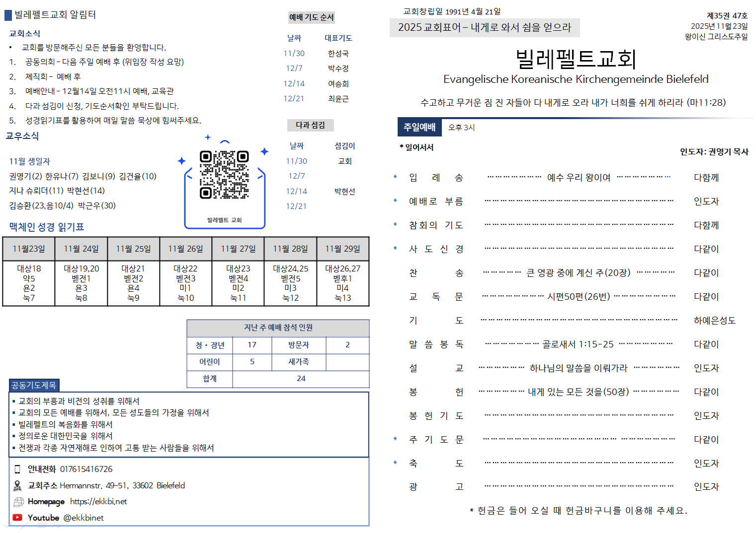 주보 제목2025년 11월 23일 주보2026-01-03 19:46작성자관리자 목록글쓰기 이전2025년 11월 30일 주보.관리자 2026-01-03다음2025년 11월 16일 주보.관리자 2026-01-03 Powered by MangBoard | 망보드 스토어