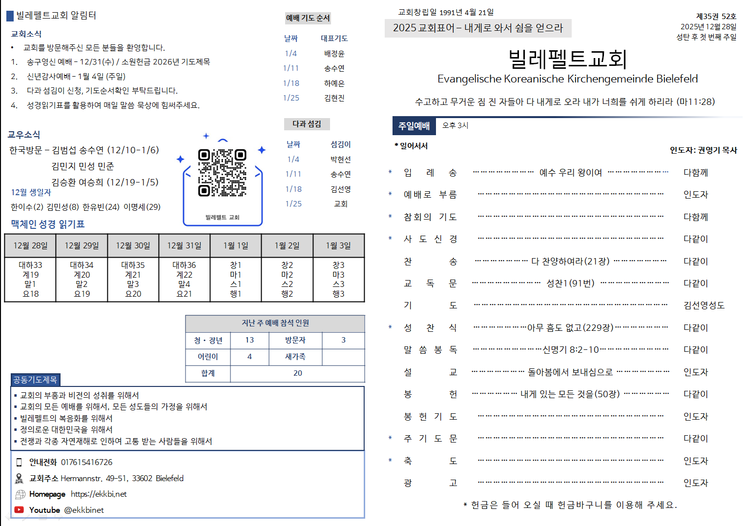 주보 제목2025년 12월 28일 주보2026-01-03 19:49작성자관리자 목록글쓰기 이전2025년 송구영신예배 주보관리자 2026-01-03다음2025년 성탄절 주보관리자 2026-01-03 Powered by MangBoard | 망보드 스토어